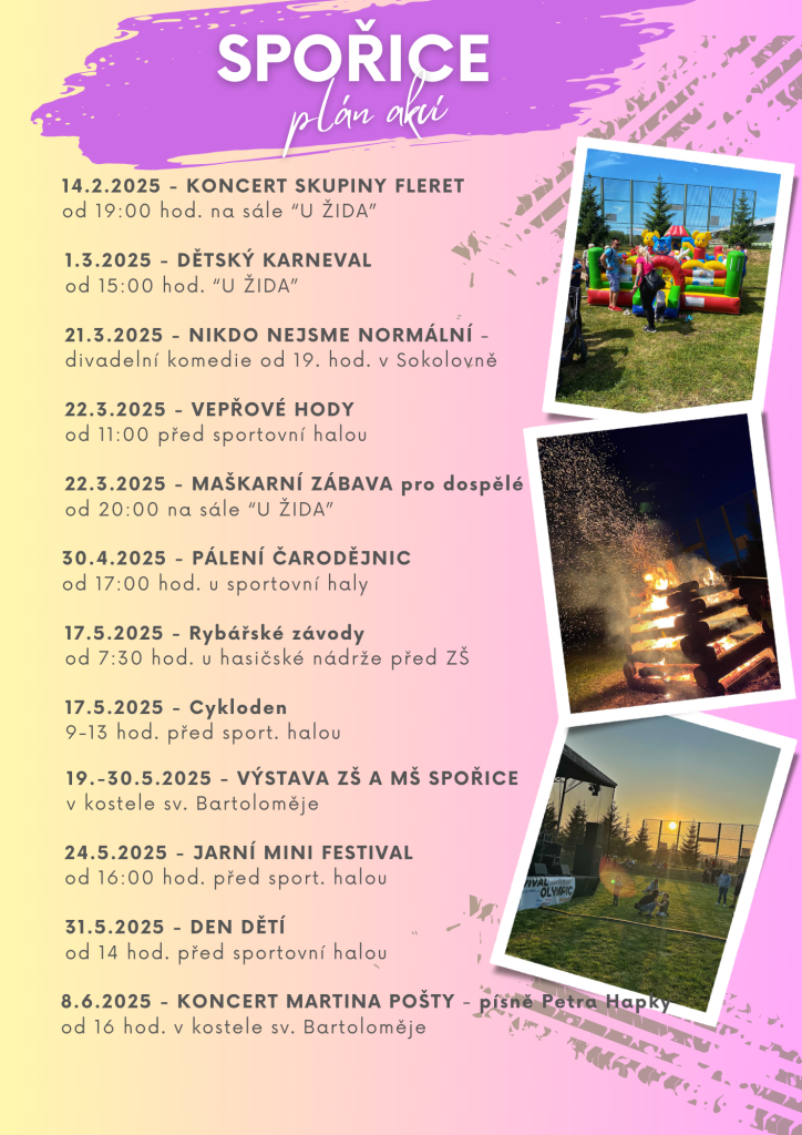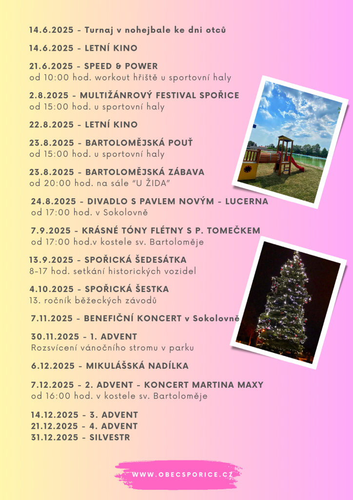 Rozpis akcí v obci Spořice na rok 2025.