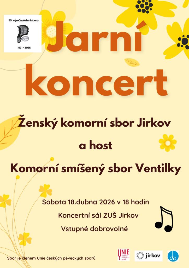 Přijďte si poslechnout koncert, kde vystoupí Ženský komorní sbor Jirkov a jako hosté bude Komorní smíšený sbor Ventilky. Vstupné je dobrovolné a srdečně vás zveme k účasti.